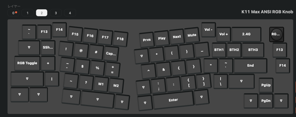 と言うことで、私のK11はレイヤー1でさえデフォルトのキーがほぼない状態なのです
